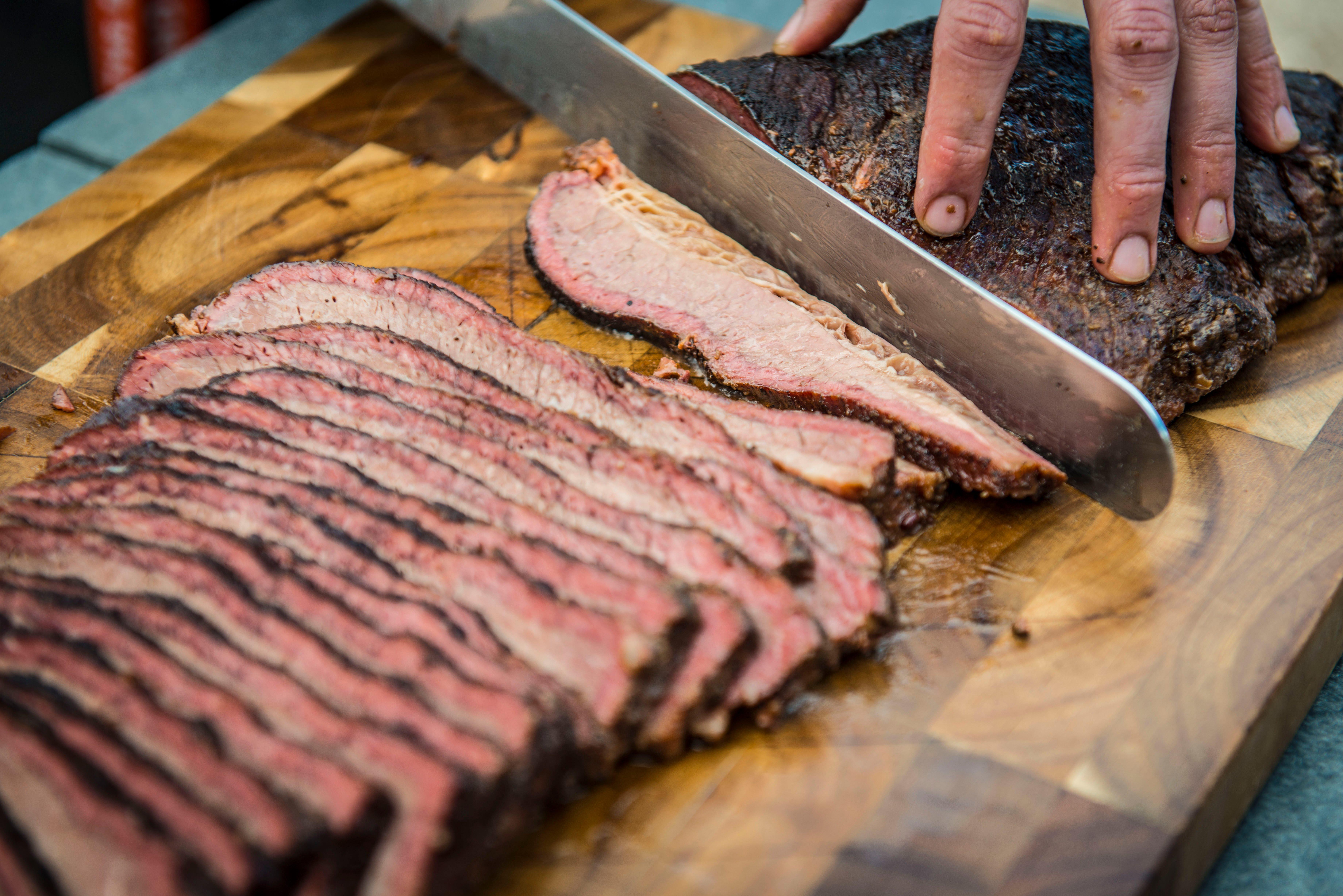 Cut Brisket Grain. Ideally, trim while the brisket is still cold, and the fat is more solid and easier to cut through. According to aaron, a good brisket slice has a combination of bark, meat, and fat. One of the biggest mistakes you can make is cutting your brisket with the grain. Cutting a brisket perpendicular, at an angle, on the bias — they all mean the same thing: This results in long muscle fibers in each slice, making the meat. As mentioned above, the brisket has two parts which can make this a little tricky, but nothing you can't tackle. You want to slice against the grain. Four easy rules for cutting brisket perfectly: If the grain is running east to west, you’re cutting north to south. Use a serrated knife for cutting; We’ll show you how to slice a brisket, no matter how you’ve cooked it. Don’t cut the point and the flat together; The key task we want. Slicing brisket is where you can either be rewarded with beautiful cuts of meat, or punished with the disappointment of botching the joint. Cut against the grain when cooked;